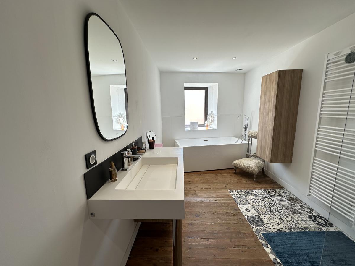 Emplacement exceptionnel en plein centre du Vieux Montaigu, cette magnifique maison ancienne en pierre, entièrement rénovée avec goût, marie à la perfection le cachet de l’ancien et le confort contemporain.