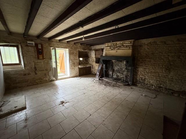 Commune de LA CRECHE, coté NIORT Maison ancienne de 96 m² comprenant : Au rez-de-chaussée : une cuisine avec un poêle à bois, une chambre, une salle d’eau, un wc, un débarras, une grange avec un faux grenier.