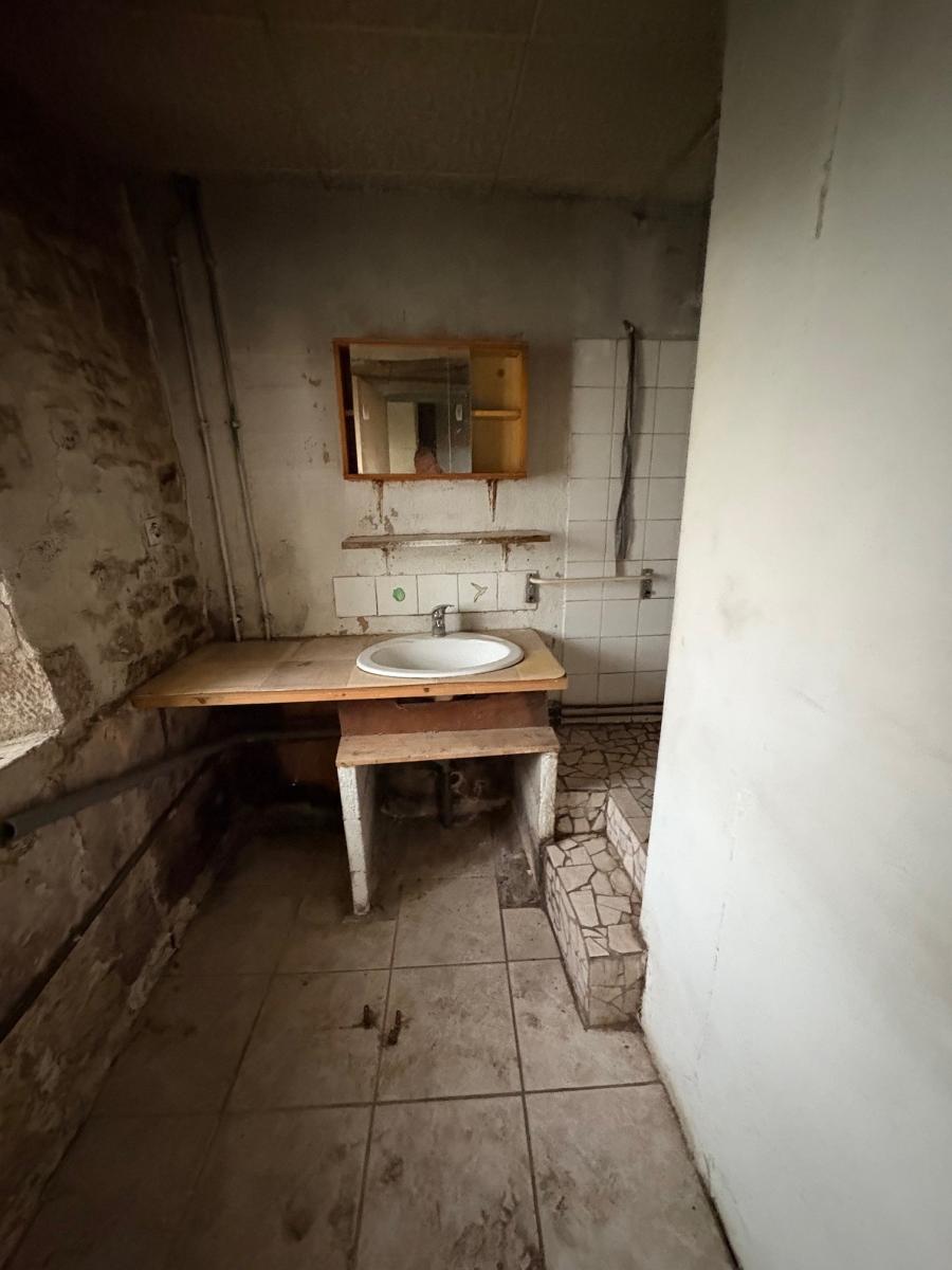 A l’étage: trois chambres, trois paliers sur aggloméré de 4,04 m², 8,14 m² et 21,47 m². Prevoir travaux: chauffage, électricité, rafraichissement, modernisation, isolation et une partie des ouvertures.