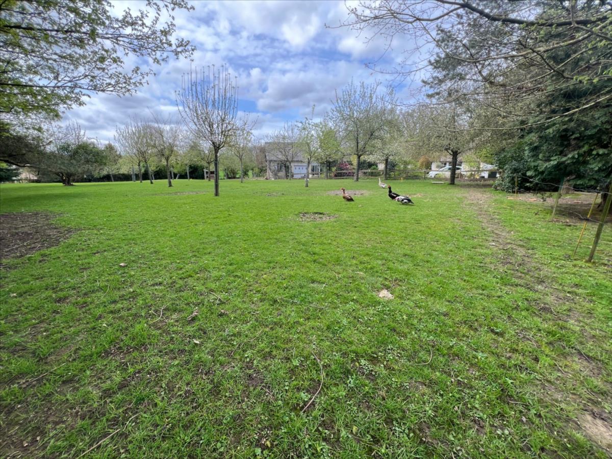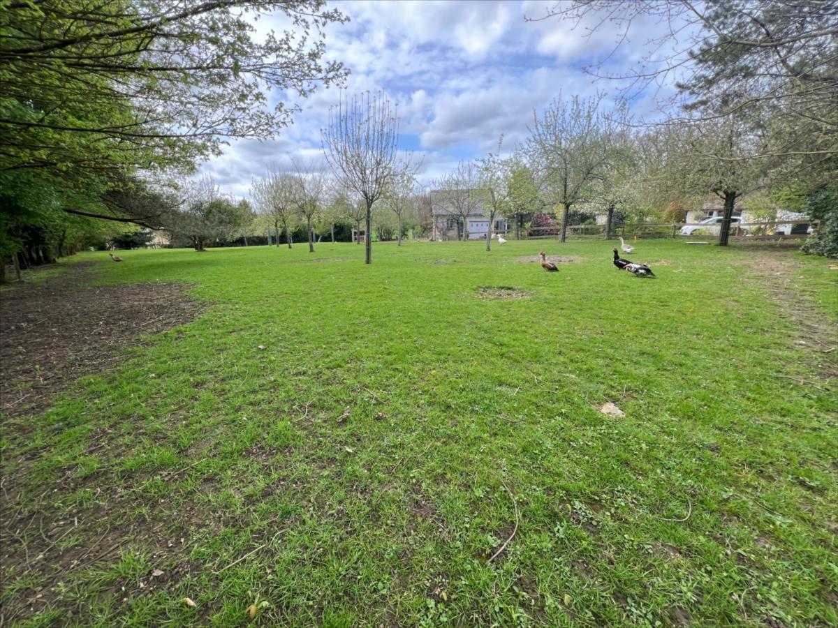 Terrain à bâtir partielle clos et arboré, avec partie plate et une autre très légèrement dénivelé, dans un environnement paisible en lisière de forêt ainsi que d'un herbage, et en bout de village.